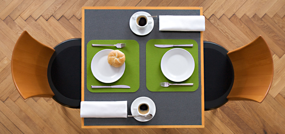 Und weil wir wissen, wie wichtig ein guter Kaffee am Morgen ist, gibt es bei uns frischen Espresso, Cappuccino & Café Latte. Und zwar soviel Sie möchten. Natürlich bieten wir Ihnen auch eine feine Auswahl erlesener Teesorten. Unser Brot und Gebäck kommt übrigens von einer regionalen Bio-Bäckerei.