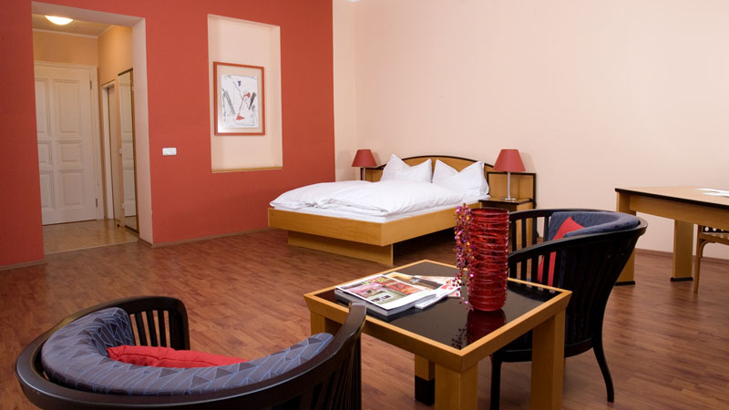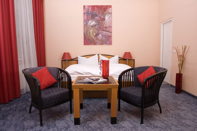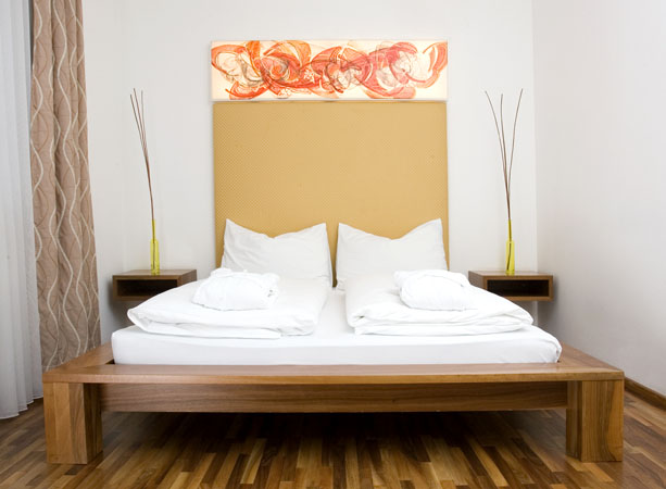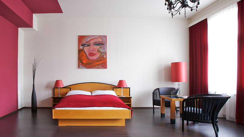 Kunst macht dort Sinn, wo sie auftaucht. Bilder von lokalen Künstlern wie zum Beispiel Johann Jascha zollen Tribut an die Linzer Kunstszene. Alle Zimmer sind mit Kabel TV, kostenlosem W-LAN und Minibar und teilweise sogar mit einem kleinen Balkon ausgestattet. Die warmen Holztöne der Möbel werden mit einer der drei stockwerkszugeordneten Kontrastfarben Rot, Orange oder Gelb kombiniert.